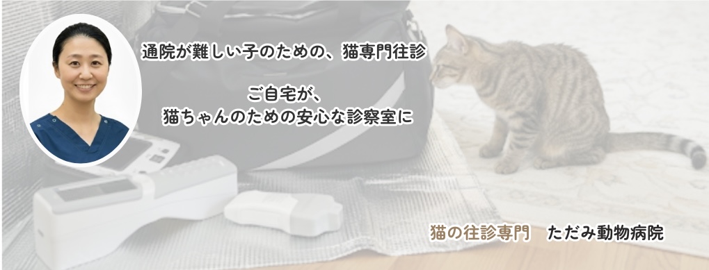 猫の往診専門 ただみ動物病院です。完全予約制で、東京都の愛猫を在宅で診療します。|往診時間:9:00~11:00・15:00~17:00|予約時間:9:00~17:00|休診日:金曜日・学会出席日|往診エリア:武蔵野市を起点に、吉祥寺・三鷹市および東京都内一部地域に伺います。